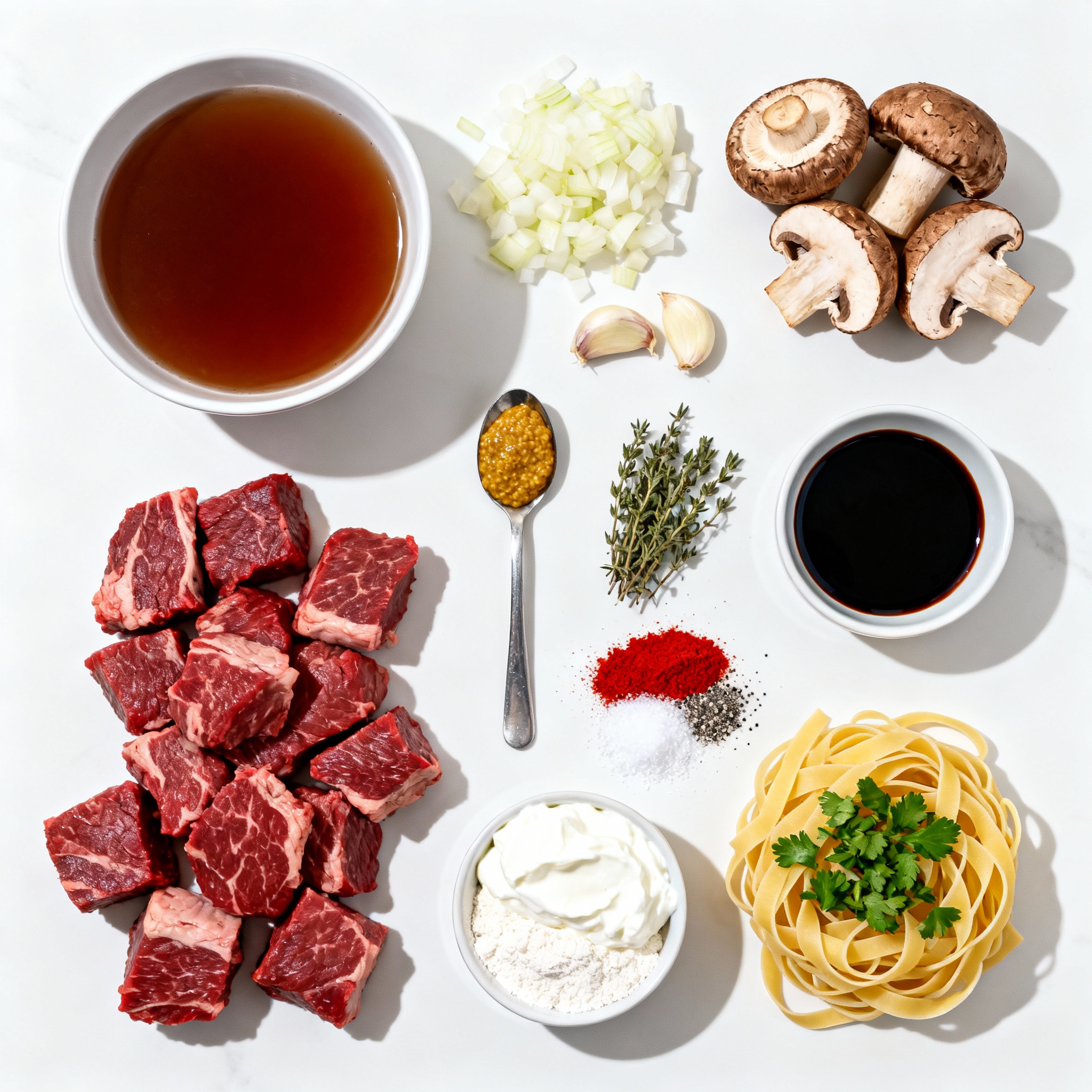 With these ingredients, I know my stroganoff will be hearty and delicious. Each bite is a blend of flavors that warms the soul.