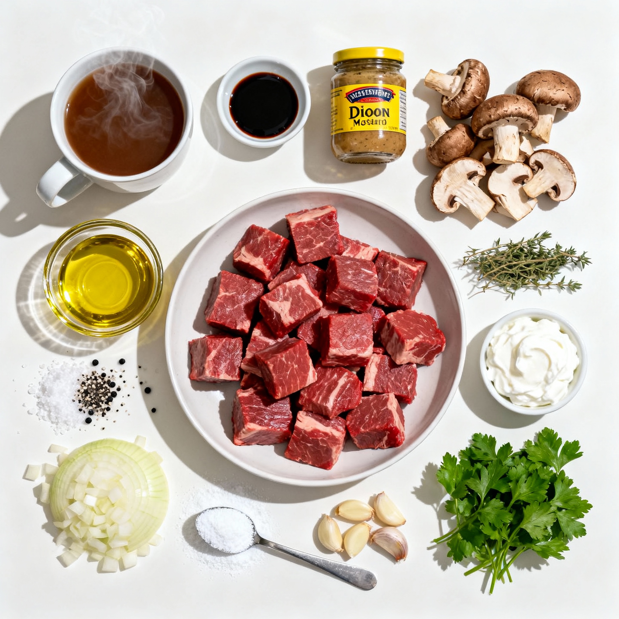 You also need beef broth. It keeps the beef moist and adds taste. Worcestershire sauce and Dijon mustard give a tasty kick. Thyme adds a nice earthy flavor.