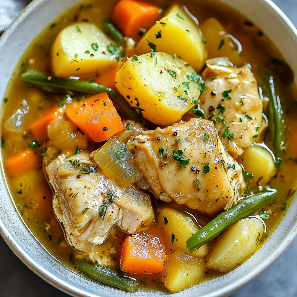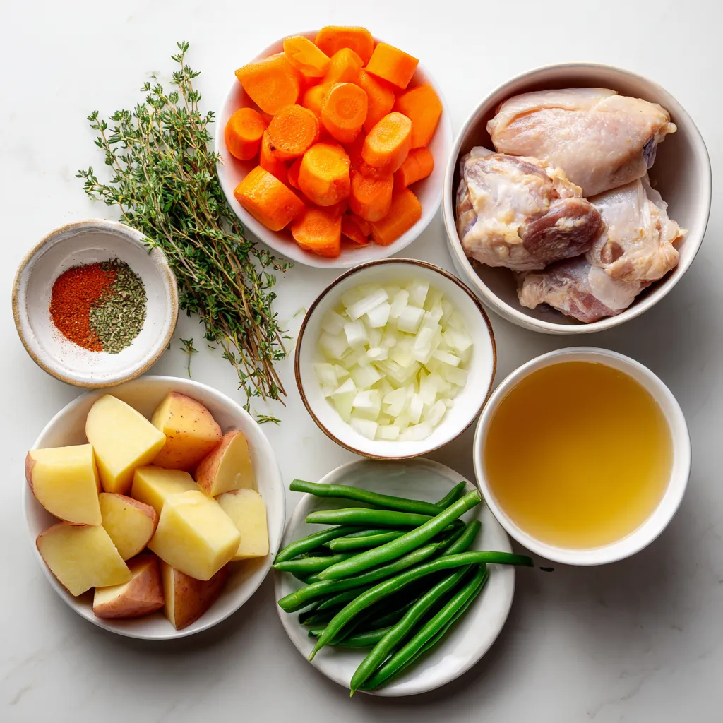 These ingredients work together to create a warm and filling dish. The chicken thighs make the stew tender. Carrots and potatoes add comfort. The green beans bring color and crunch.