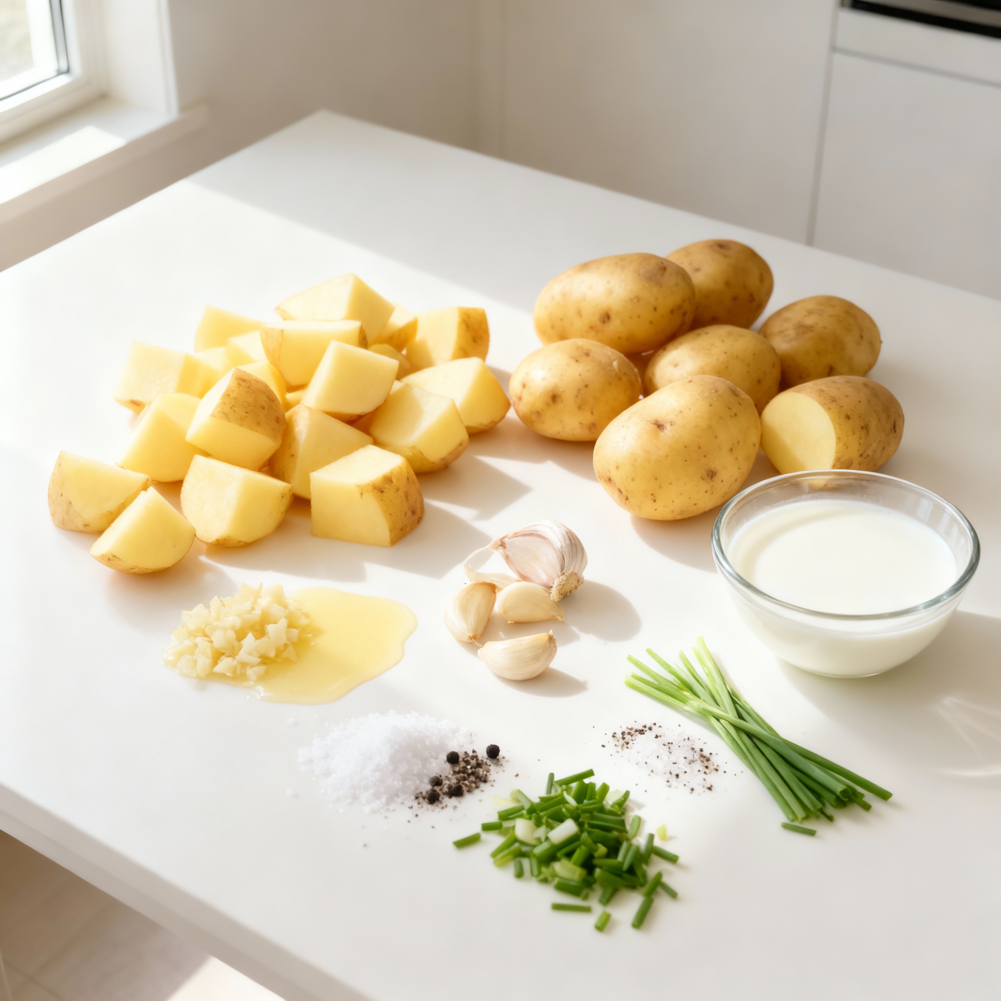 To start, grab your Yukon Gold potatoes. First, wash them under cool water. This removes dirt and makes them clean. Next, peel the skin off with a vegetable peeler. Once peeled, cut the potatoes into even cubes, about one inch wide. This size helps them cook evenly. Rinse the cubed potatoes again to wash away any leftover starch. This step keeps your mash from being too gummy.