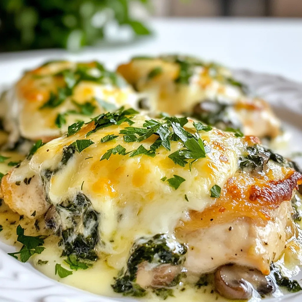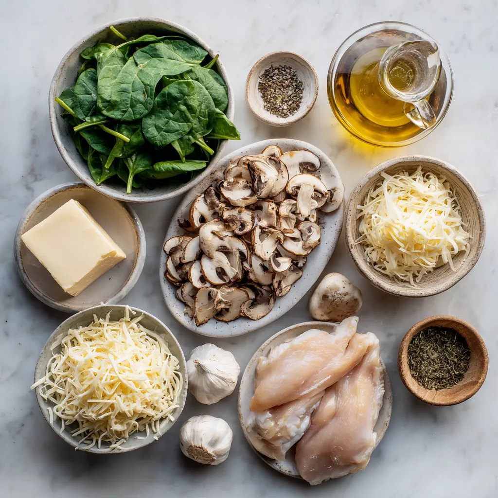 Gather these ingredients to create a dish that is both creamy and flavorful. The chicken offers a hearty base, while the spinach and mushrooms add nutrition and taste. The blend of cheeses provides richness, making every bite satisfying. The garlic and oregano bring depth to the dish, ensuring it bursts with flavor. Using fresh ingredients helps elevate the taste, making this meal feel special. Keep your pantry stocked with these staples for easy access when you crave this comfort food.