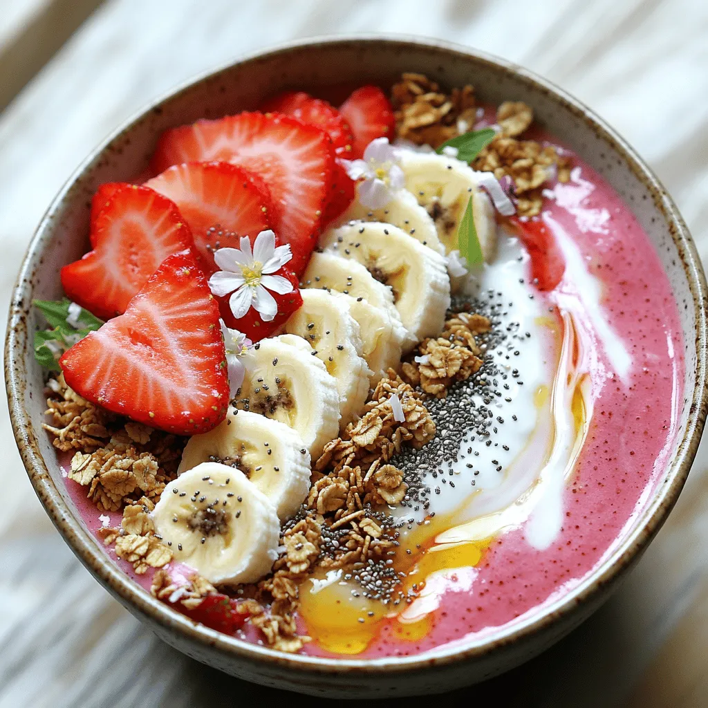 This method gives you a tasty and beautiful Strawberry Banana Smoothie Bowl. Enjoy your creation!