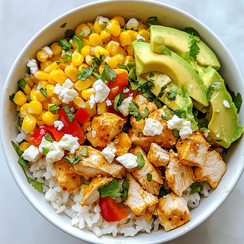 If you like heat, add more chili powder or jalapeños to the chicken. You can also mix in a dash of hot sauce. This will give your bowl a spicy twist. Don't forget to adjust the lime juice to balance the heat. A spicy street corn chicken rice bowl is sure to wake up your taste buds.