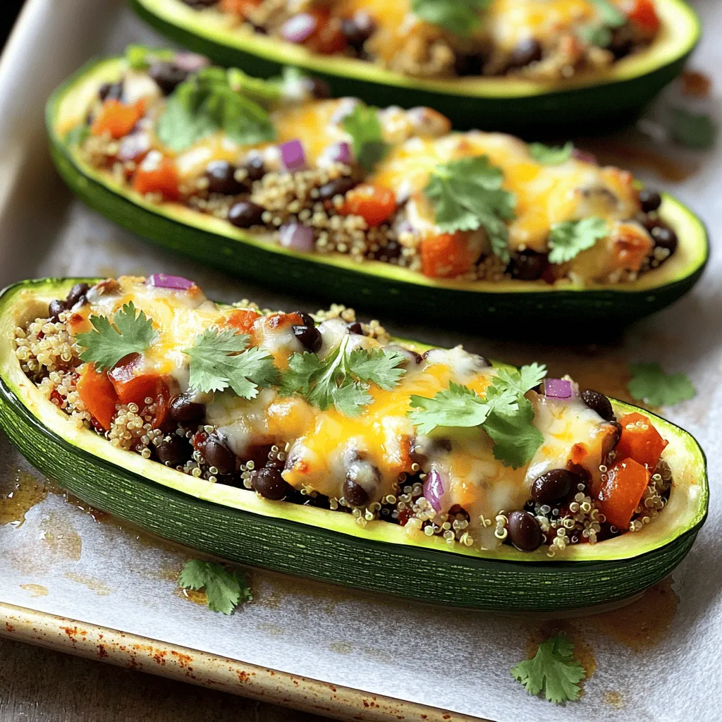 Serve these stuffed zucchini boats on a colorful plate. Pair them with a fresh salad or some crusty bread. You can also drizzle a bit of hot sauce on top for a kick. Enjoy a zesty quinoa and black bean stuffed zucchini boat for a fun and healthy meal!