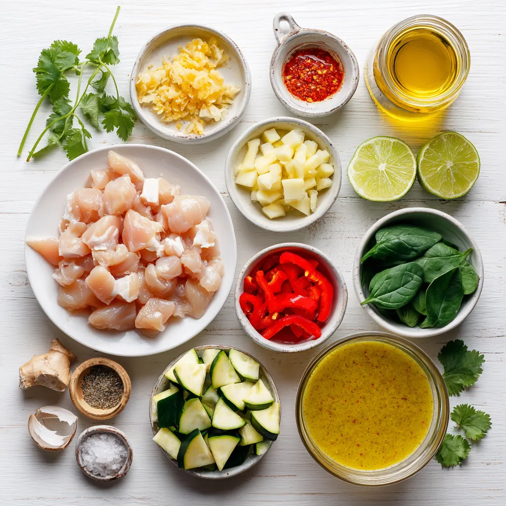 Each ingredient plays a key role in creating the rich, bold taste of this soup. The chicken provides protein and a hearty base, while the coconut oil adds healthy fat and depth. The onion and garlic bring sweetness and aroma. Fresh ginger gives a warm kick, and the red curry paste packs in the flavor, with just the right amount of spice.