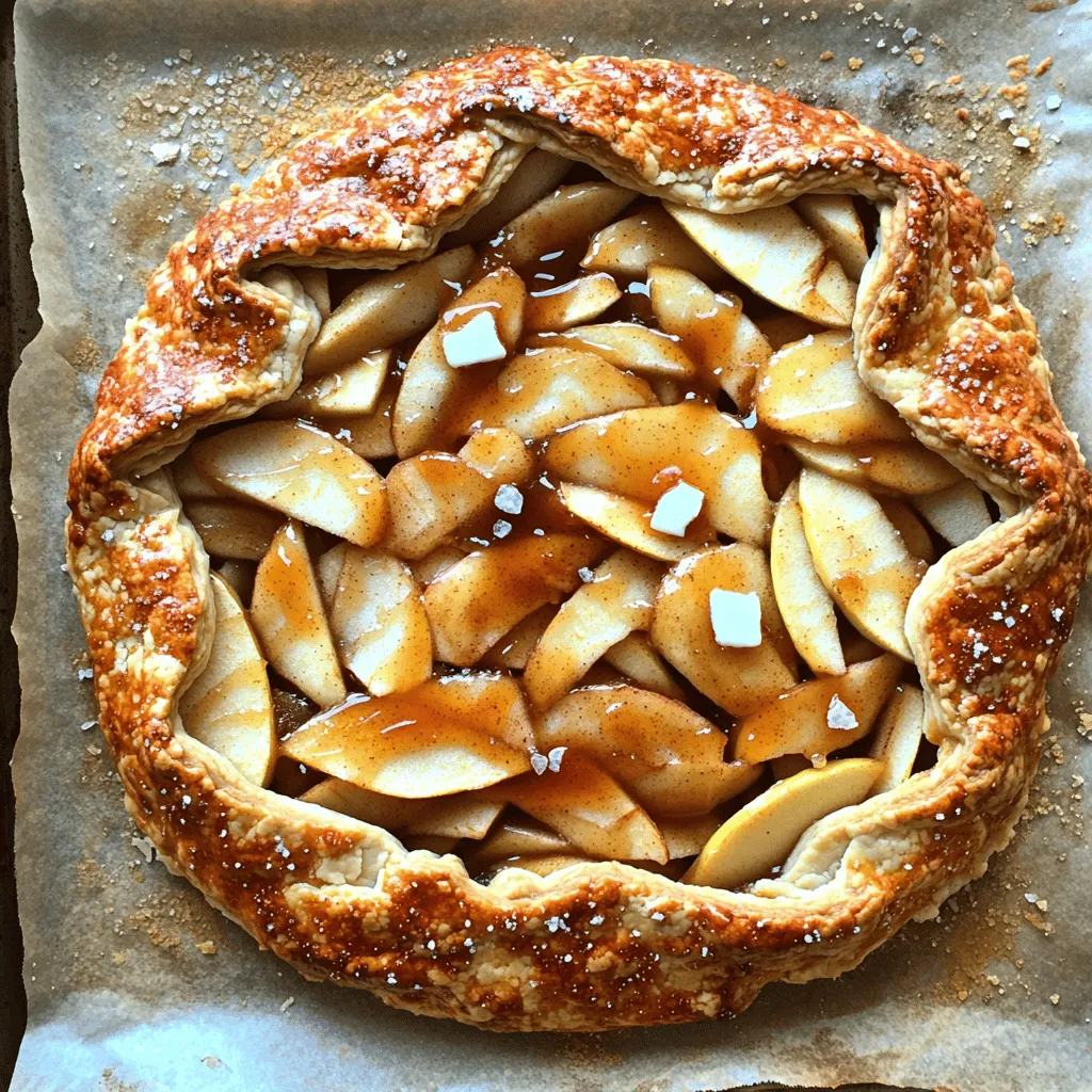 Preheat your oven to 400°F (200°C). Brush the crust edges with a beaten egg to get a golden color. Sprinkle sea salt flakes over the caramel sauce. Dot the apples with 1 tablespoon of small butter pieces for richness. Bake your galette for 25 to 30 minutes. Look for a golden brown crust and tender apples.