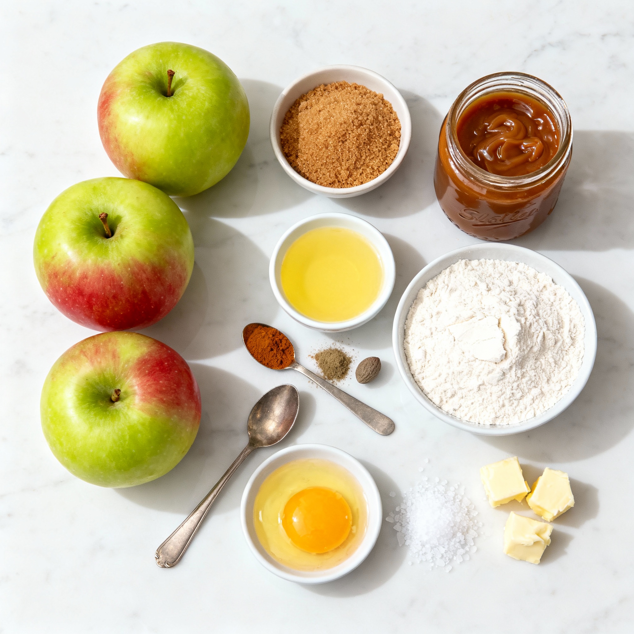 To make the Warm Salted Caramel Apple Galette, you need simple and fresh ingredients. Here is the list: